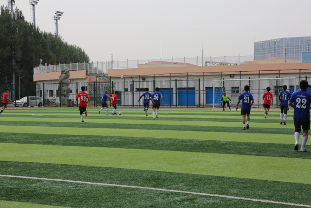 本次友谊赛共分四节,单节时长四十分钟,前两节结束双方交换场地。伴随着主裁判开场哨响,双方节奏有来有往,互不相让,在第一节比赛中段机电24号助攻19号破门得分,首节末段,教工队在门前造成杀伤形成点球机会,11号点球稳稳命中,比分扳平。次节上来,教工队28号队员门前头球摆渡取得领先,随后又由9号队员中场前吊射,打出一波世界波,机电也反击命中一球作出回应。第三节易边再战,刚一开场教工23号就凌空抽射,上场即建功。第四节虽然双方队员都出现不同程度的体力下降情况,但积极地争抢每一次球权,最终机电打入三球,教工打入两球,值得一提的是,教工最后一次进攻将球压哨打入球门,为本次友谊赛画上了圆满的句号。比赛结束之后,双方队员来到场边击掌示意,并一起合影留念。