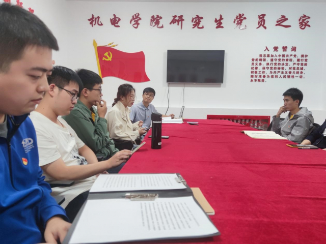 为深入学习贯彻落实习近平新时代中国特色社会主义思想,以习近平总书记贺信精神为引领,贯彻落实习近平总书记在庆祝建党100周年大会和党史学习教育动员大会上的重要讲话精神,引导学生党员做到学史明理、学史增信、学史崇德、学史力行,坚定“做习近平新时代中国特色社会主义思想和雷锋精神的学习者、宣传者和实践者”的支部定位,2021年9月15日晚20点,学雷锋小组党支部在机电学院研究生党员之家“红色筑梦馆”召开本学期第一次党员大会,大会由党支部书记贺文辉主持。机电学院学生党建负责人黄郅博老师列席本次会议。