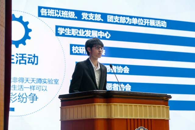 大会开始,黄郅博老师首先对研究生阶段的课程、科研、社会实践、党建、评奖评优和毕业去向等重点工作做了耐心地讲解。其中,黄郅博老师着重强调了课程和科研是研究生阶段的两大根本,课程应当遵守考风考纪,科研切忌学术不端;社会实践乃必修环节,应当提早做好准备;评奖评优作为同学们最为关注的部分,黄郅博老师对评选的时间节点和奖项做了一一说明,希望大家从入学开始就努力提升自我,争做优秀的哈工大人;此外,黄郅博老师引用往届学生的毕业去向数据,从读博、出国和就业三个方面对同学们未来发展做了详细的剖析,并强调同学们应当提早做好规划,多多了解相关信息。